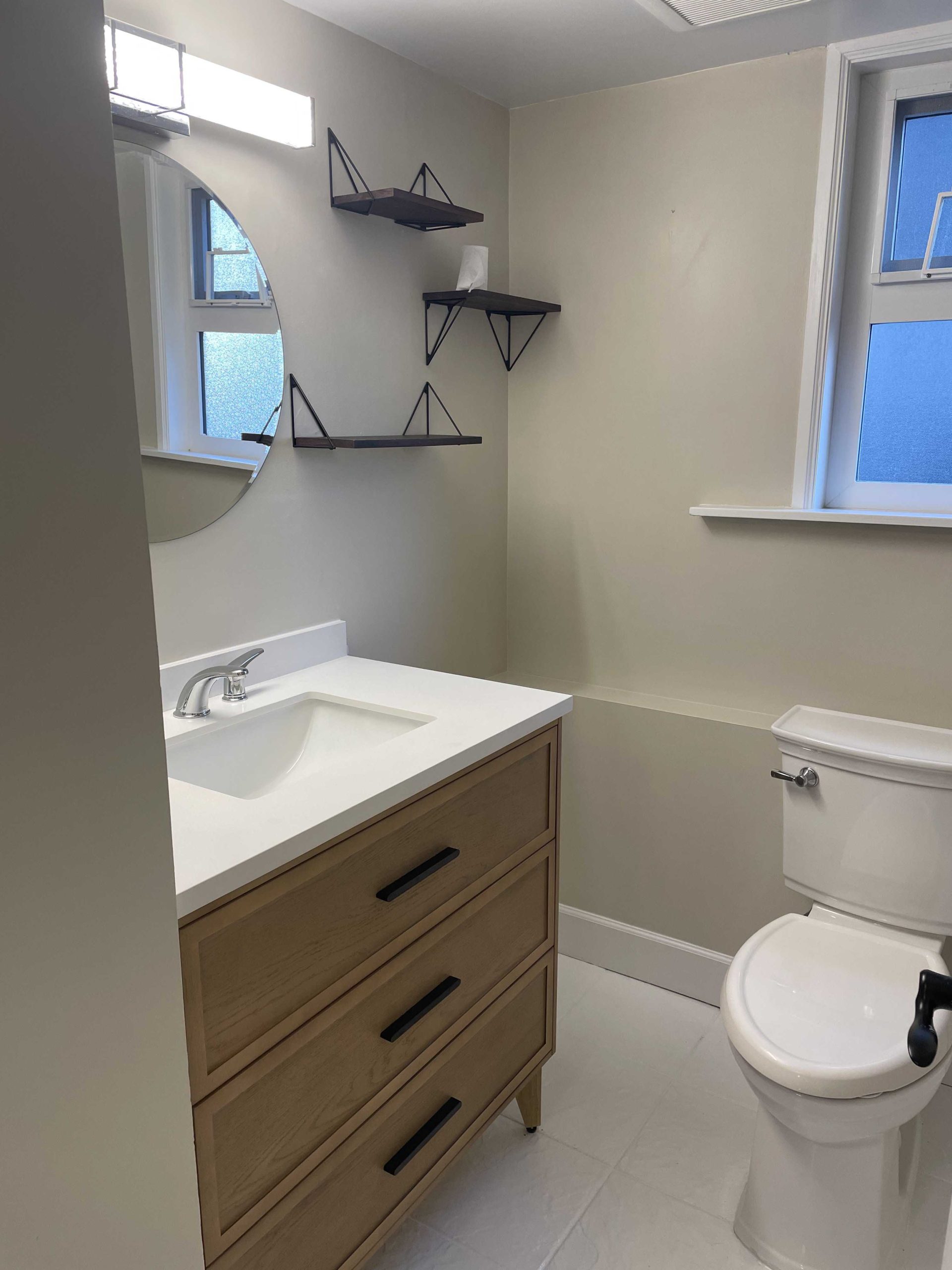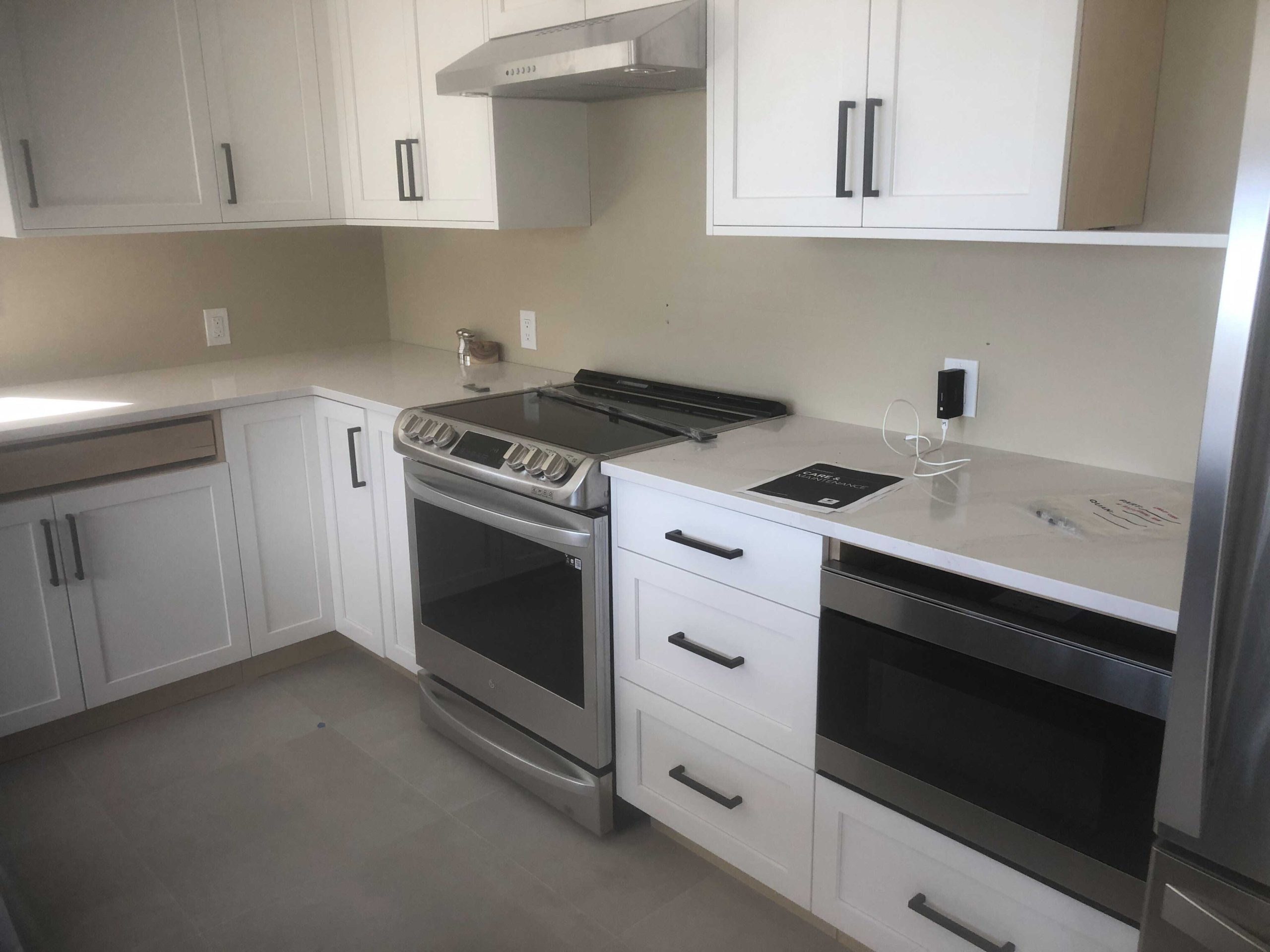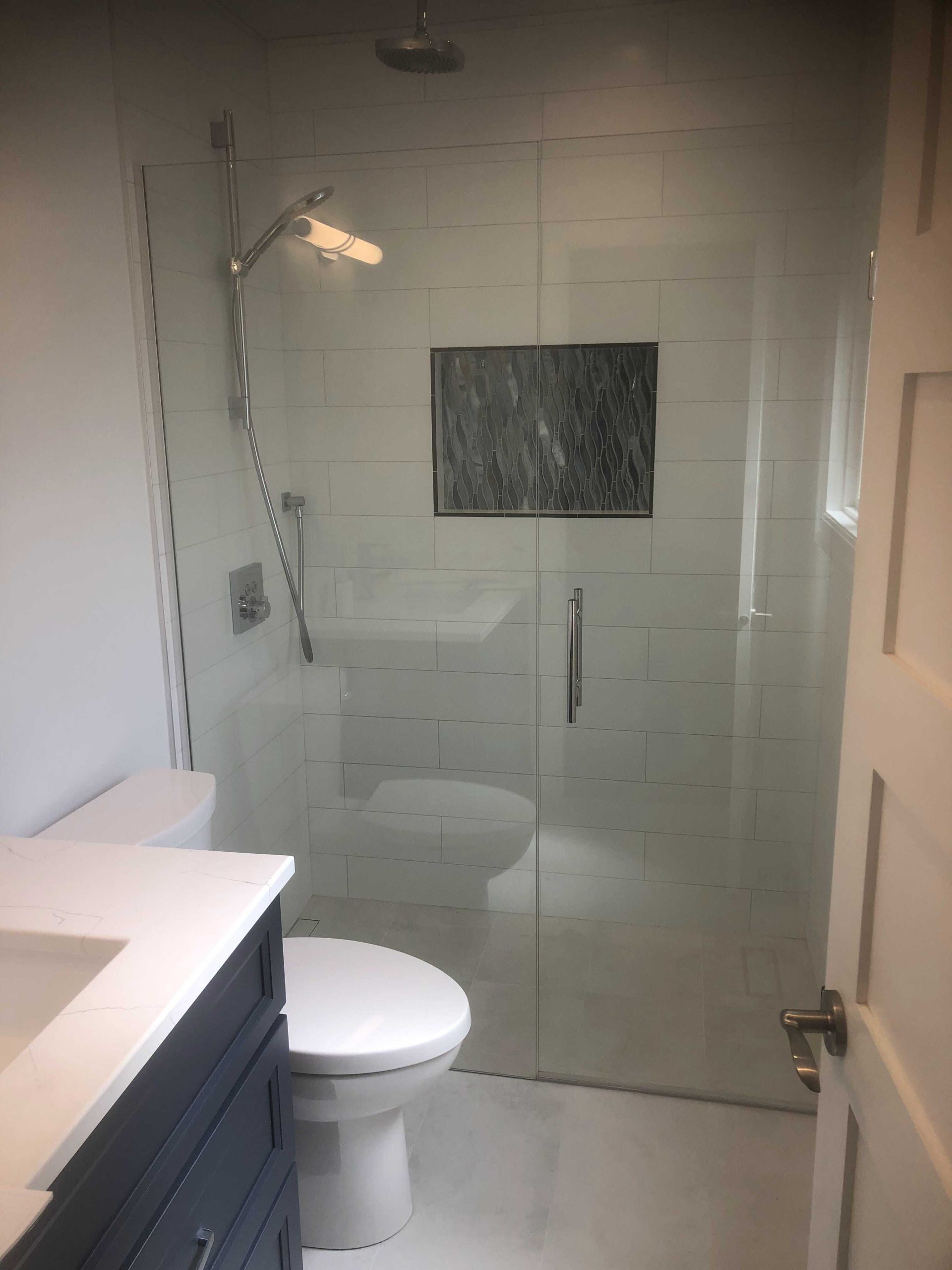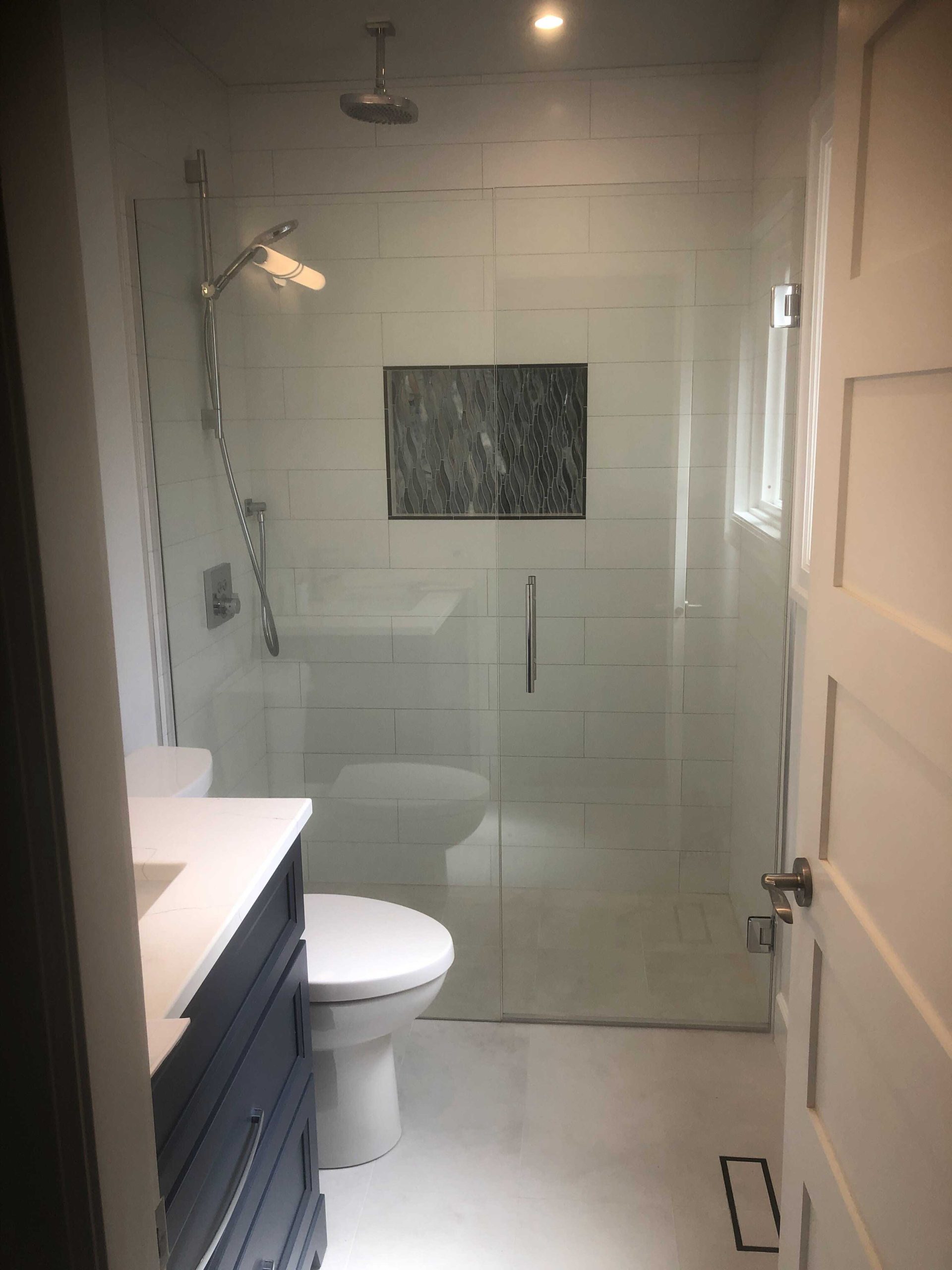 In the kitchen, special touches were required. So, we created custom pan pull-outs, drawer liners, garbage-and-recycling cabinets, a dedicated wine area, as well as discreet spots for electronic charging. The bathroom’s major fixtures and use of space were part of the overhaul. We installed a rain-head shower, custom glass work, a large CFM fan, and designer tile vents. These are complemented by a fresh aesthetic that grew from a successful collaboration.